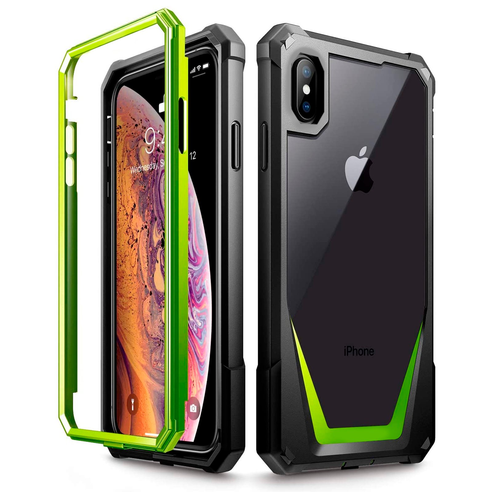 Case que cuenta con protección para la parte de adelante y atrás de tu teléfono. La parte de adelante es un marco de PC grueso y resistente. Atrás está formado de dos materiales resistentes, acrílico transparente y hule en toda la orilla. Este case absorbe el impacto cuando el teléfono sufre caídas fuertes, y aísla todas las piezas delicadas como la cámara y la pantalla. *NO INCLUYE VIDRIO TEMPLADO EN LA PANTALLA.