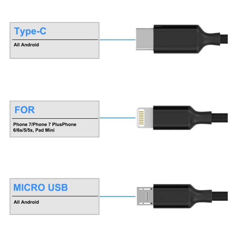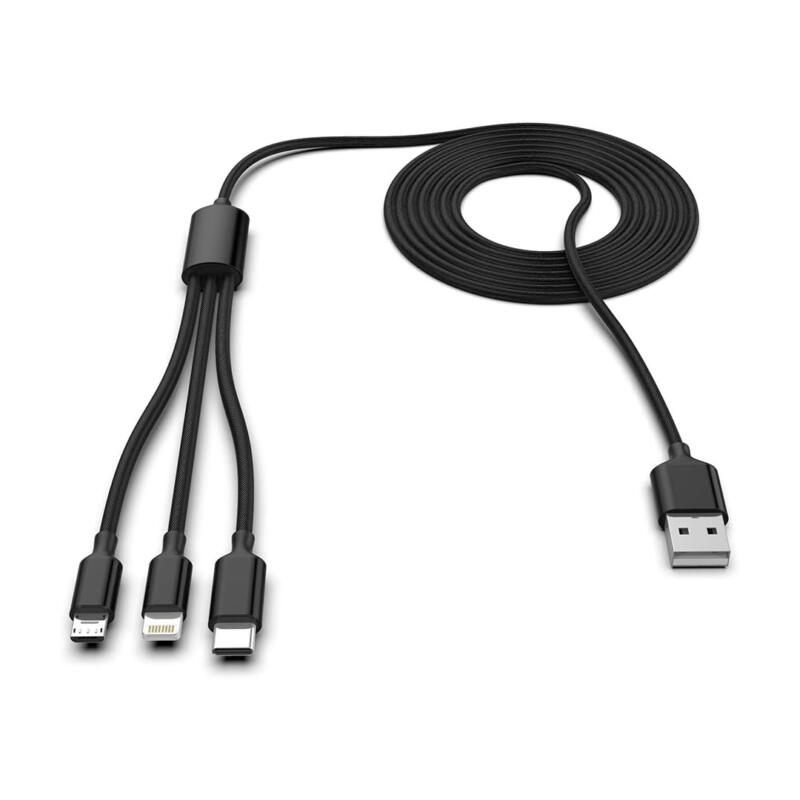 Cable Multi-Salida Pro: Un solo cable que se divide en los tres conectores más utilizados del mercado: