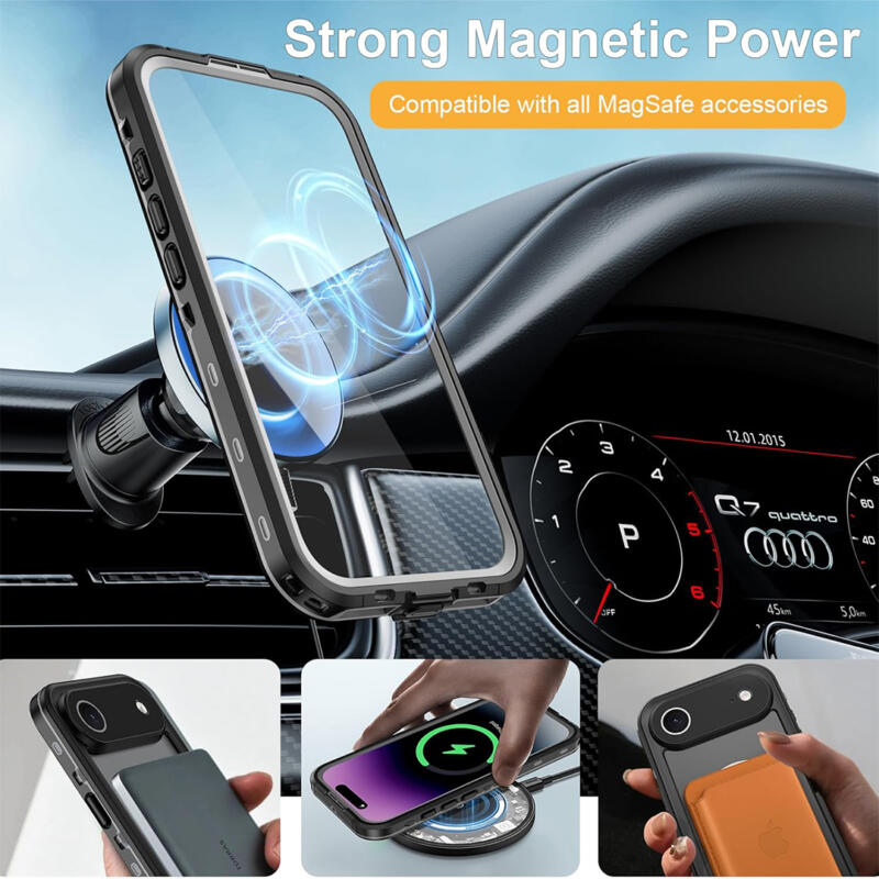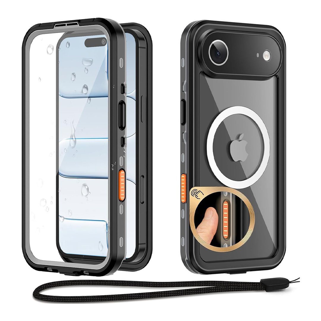 Case impermeable y sumergible. Resiste hasta 2 metros debajo del agua y te permite tomar fotos y videos. También es resistente a golpes y caídas, el diseño es transparente en la parte de adelante y atrás. Protege de la suciedad y el polvo. Tiene acceso fácil a los botones de volumen, vibrador y al puerto de carga.