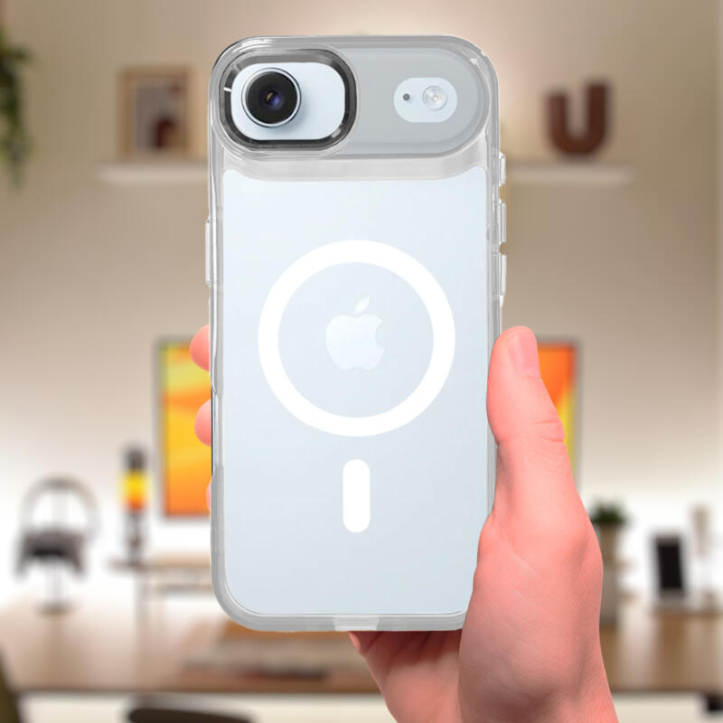 Case fabricado ACRILICO, TPU Y METAL. Cuenta con protección contra golpes y caídas fuertes. Porta un aro MagSafe con el cual podrás utilizar tus accesorios ya que cuanta con alta tensión magnética, también tiene un marco de metal alrededor del módulo de cámaras ayuda a proteger mejor los lentes de la cámara de tu dispositivo. Has que tu dispositivo se vea de manera original con este modelo de case. Tiene cortes precisos en las entradas, salidas y botonera.