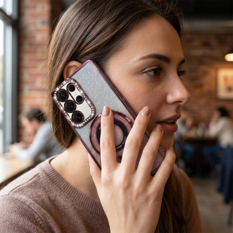 Esta funda para Samsung S24 Ultra no solo es una declaración de estilo, sino una armadura de alta fidelidad para tu dispositivo. Es el equilibrio perfecto entre la estética «glam» y la protección.
