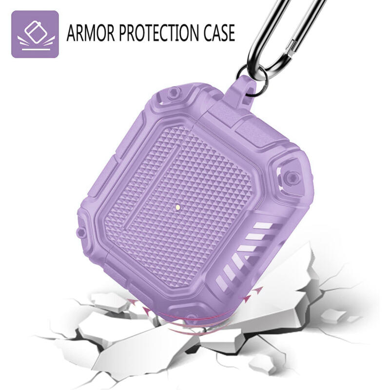 Case fabricado en silicona rígida. Protege tus Airpods de arañazos, golpes, caídas accidentales y colisiones, incluye llavero mosquetón adicional, para un fácil transporte, que se puede fijar en tu bolso o mochila. Tiene cortes precisos para introducir los Airpods y quede totalmente seguro.